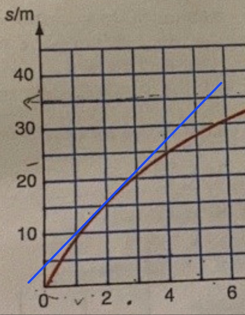 Lutningen på den korda du har ritat är lika med medelhastigheten i intervallet 2 till 8 sekunder.