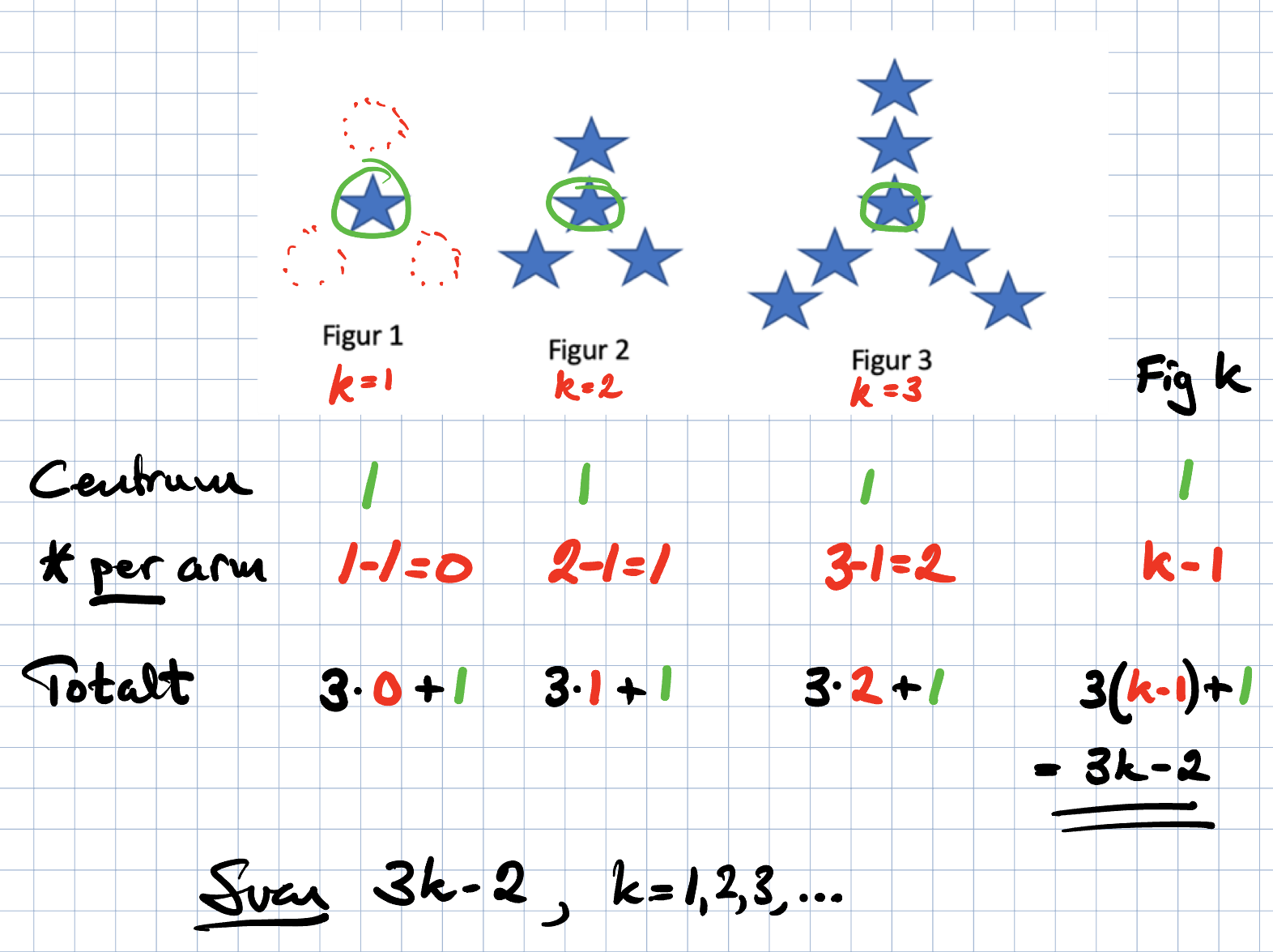 - Figur 1: n = 2. Uttrycket blir då n+1 = 2+1 = 3. Det är 1 stjärna för lite.