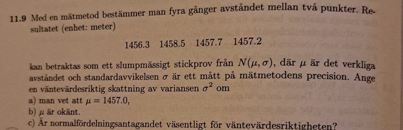 Ange väntevärdesriktig skattning av variansen om man vet my