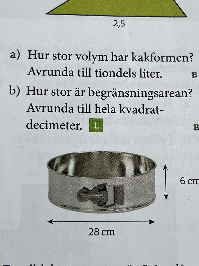 Tänk dig att du klipper upp och rätar ut plåten som utgör mantelarean. Vad blir bredden och vad blir längden?