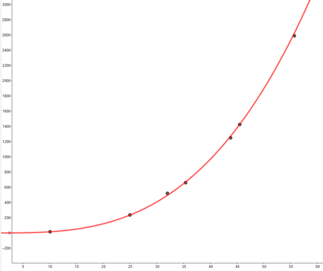 Om du anpassar en potensfunktion till dessa data så ser den ut så här: