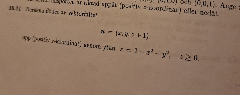 D4NIEL skrev:Börja med att göra en skiss över ytan, markera flödet du vill beräkna (pilar i positiv riktning)