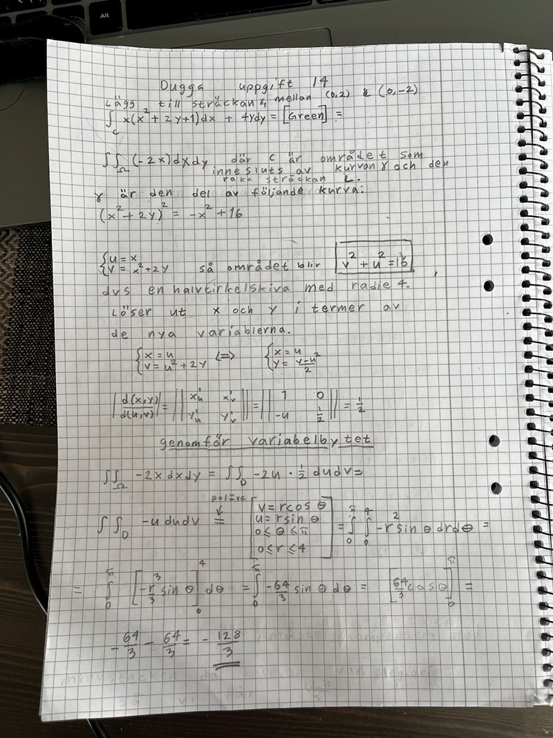 Hej! Tack så mycket för svar! Nu blev det rätt. Jag gjorde som du sa men jag använde bara det ena variabelbytet (det första). Är det en slump att jag fick rätt svar då?