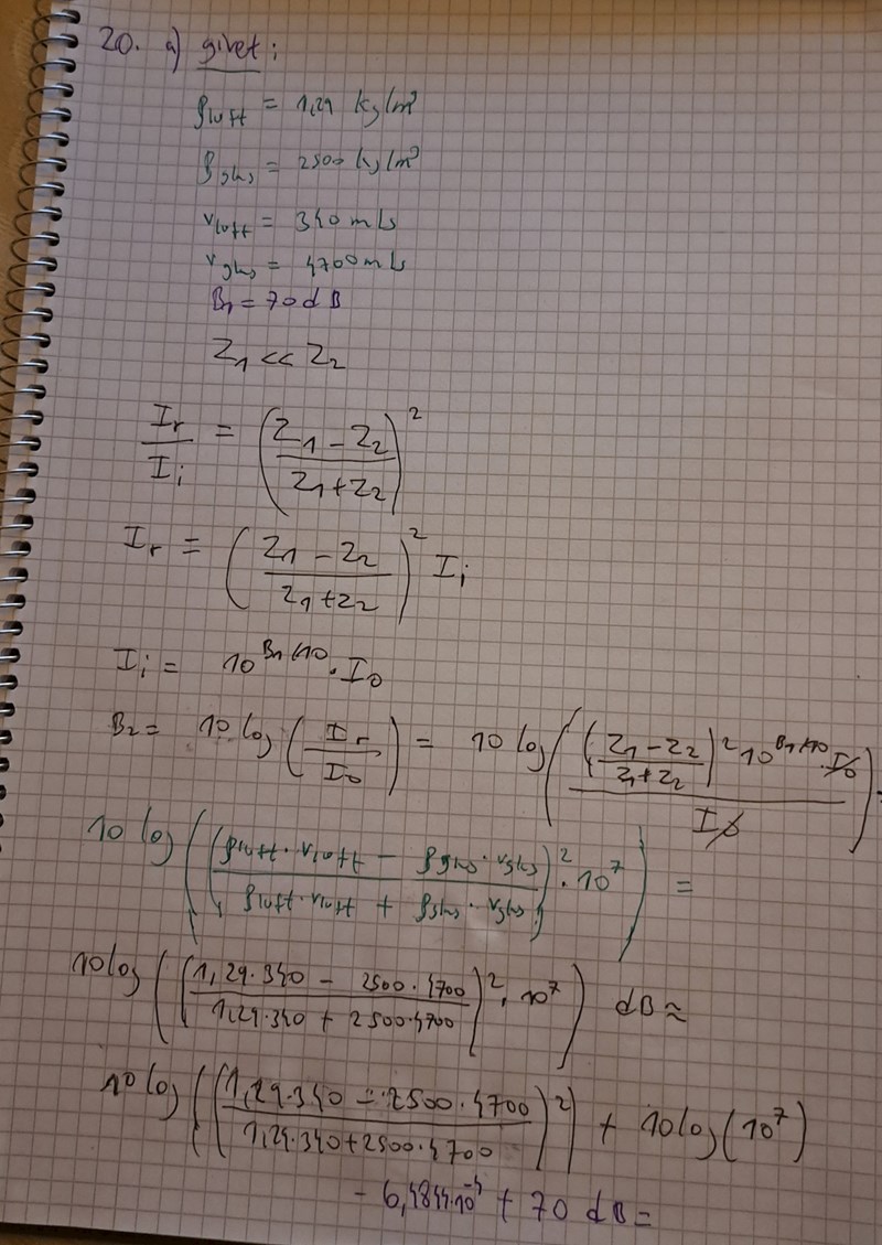 destiny99 skrev:Pieter Kuiper skrev:destiny99 skrev:Pieter Kuiper skrev:destiny99 skrev:Pieter Kuiper skrev:destiny99 skrev:Varför är det bättre att räkna med transmissionskoefficient formeln än reflektionskoefficienten ? Jag tänker vi är ändå ute efter den reflekterade och transmistterade intensitet så att vi kan även få fram ljudintensitetsnivå