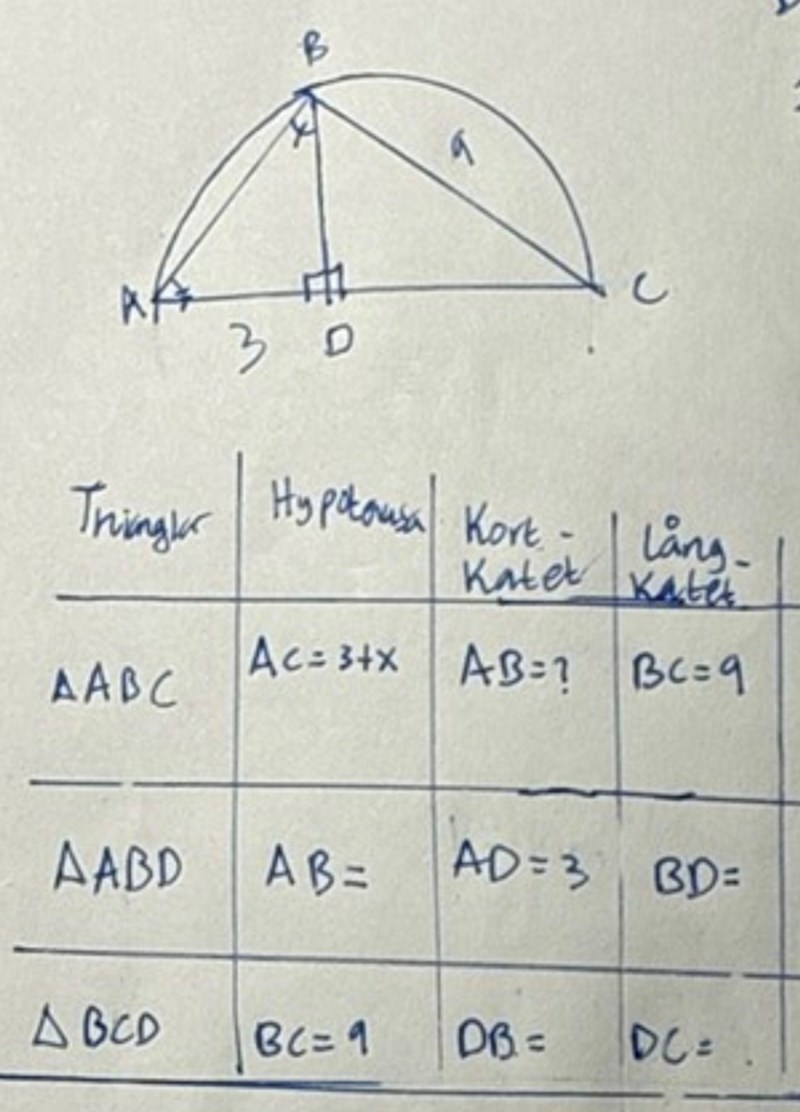 Du vet att cirkelns diameter är |AC| = 3+x.