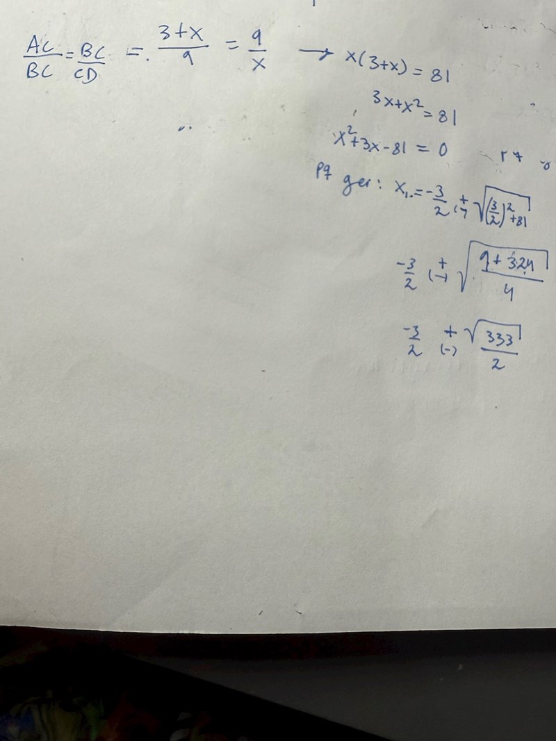 Sätt in detta i likformighetssambandet och försök att lösa ut x. Visa alla steg I dina uträkningar.