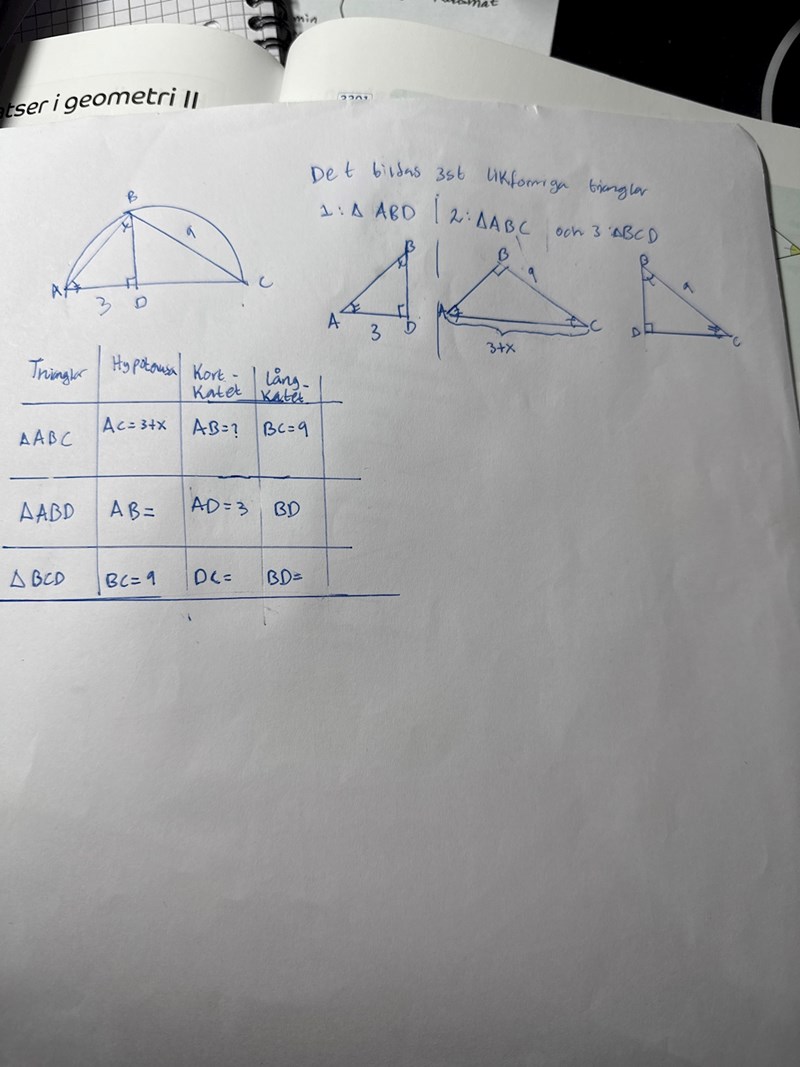 Du har tre likformiga trianglar i figuren, nämligen ABC, ABD och BCD.