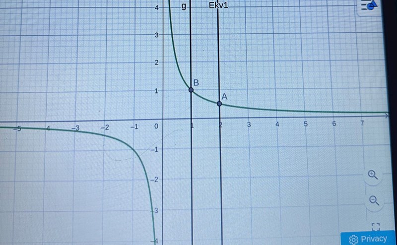 Ett omrâde begränsas av kurvan y =1/x den positiva x-axeln samt linjerna x = 1 och x = 2. Bestäm volymen av den rotationskropp som bildas dá detta omrade roterar kring y-axeln.
