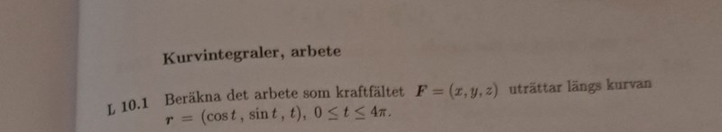Bestäm det arbete som kraftfältet uträttar längs kurvan