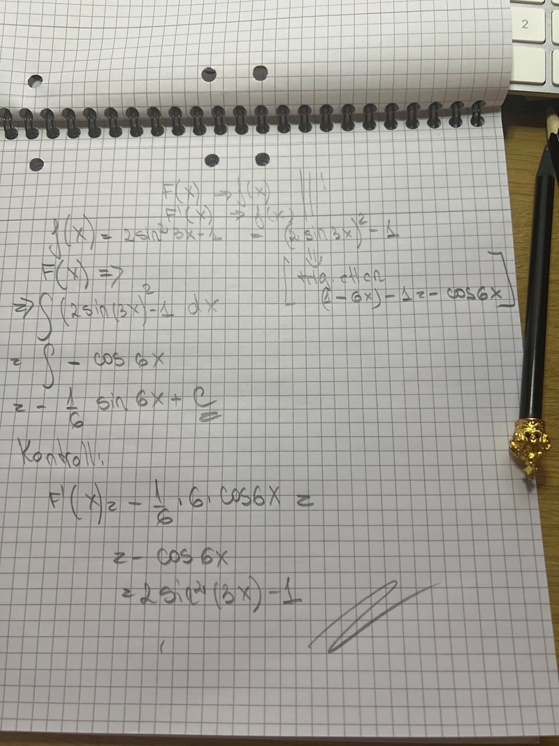 Står det F(x) = -(1/6)cos(6x) eller F(x) = -cos(6x)?