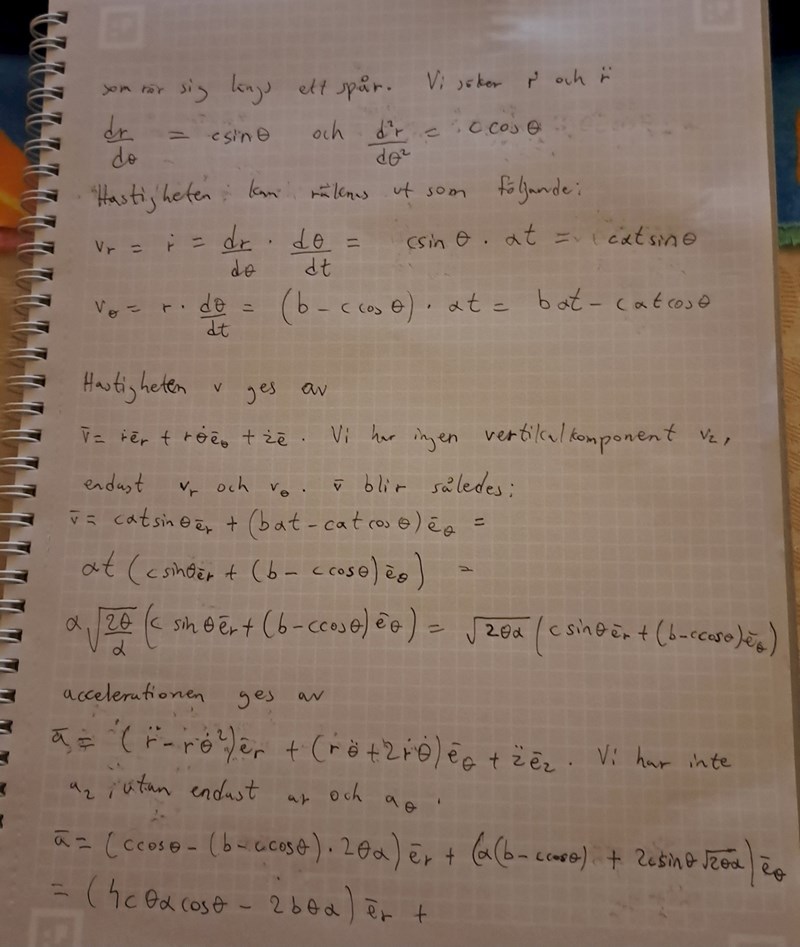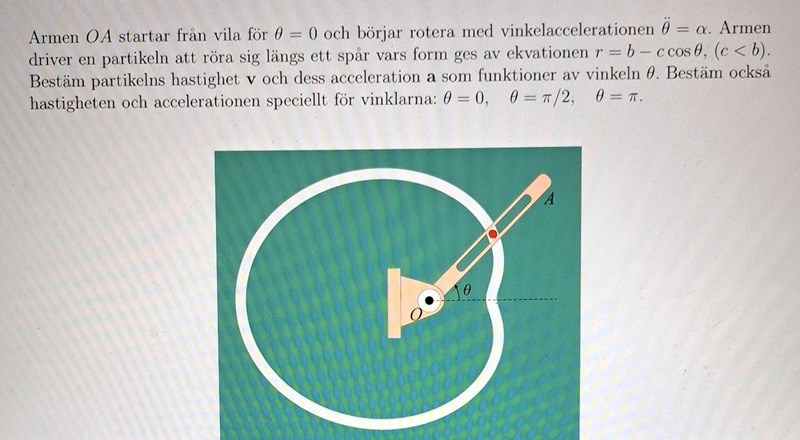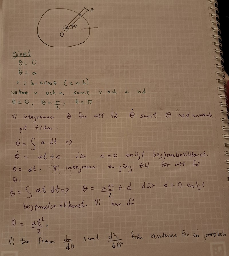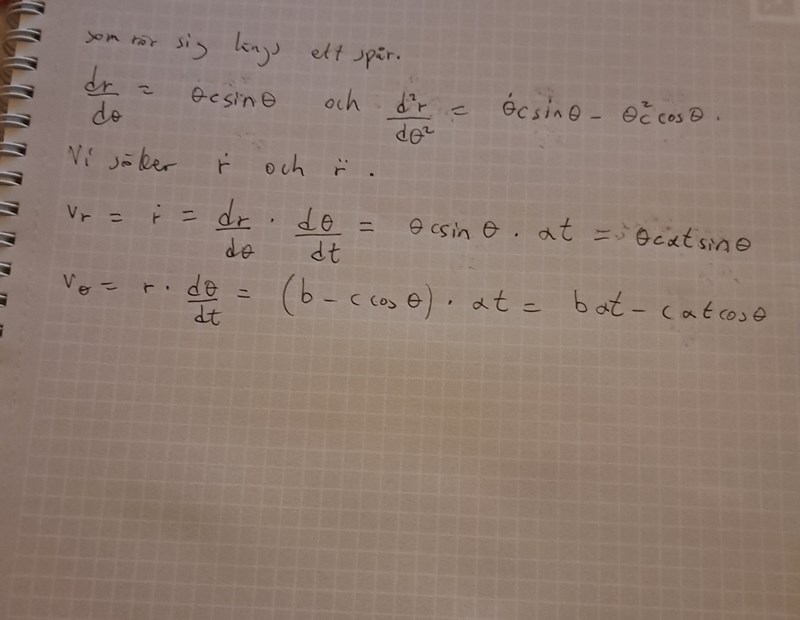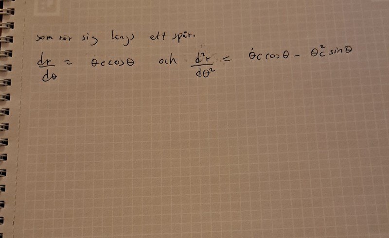 Vi kanske ska ta en sak i taget nu så jag inte blandar ihop all data som är givet. Jag vet r(theta) och theta prick prick är d^2theta/dt?