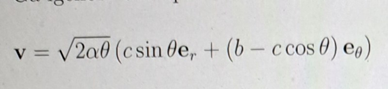 Dr. G skrev:Använd uttrycken för hastighetsvektorn och accelerationsvektorn i polära koordinater.