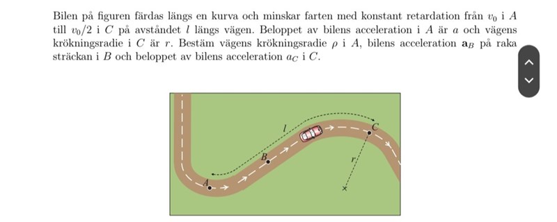 PATENTERAMERA skrev:Beloppet av accelerationen, dvs , är enligt texten lika med a (a är en skalär) då bilen befinner sig vid A.
