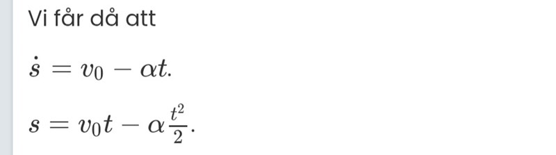 PATENTERAMERA skrev:v = -alfa x t + konstant gäller generellt om vi integrerar . Notera att v-prick står för dv/dt.