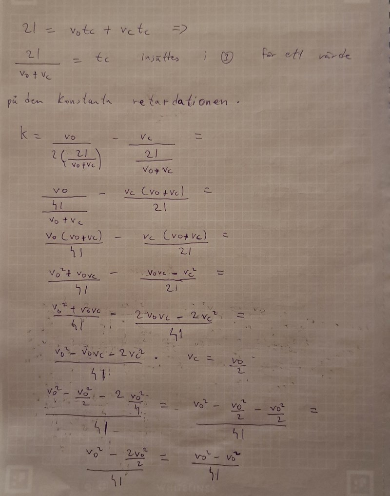 "Nja, farten minskar från v0 till v0/2. Konstant retardation."