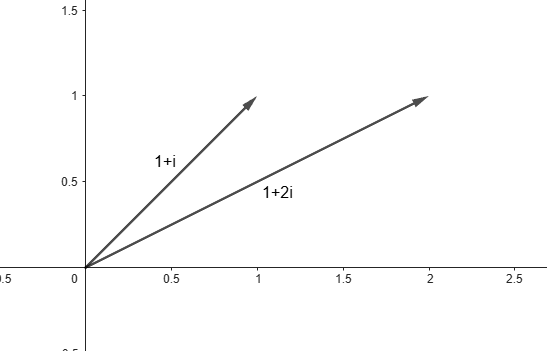 När man multiplicerar ett komplext tal med någonting kan vi tänka oss att det blir en skalning av denna vektor.