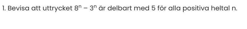 8n – 3n = 3n – 3n = 0 (mod 5) så 8n – 3n = 0 mod (5) vilket skulle bevisas.