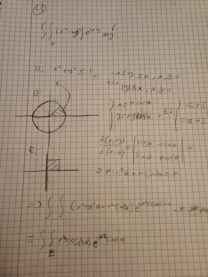 Här har jag tänkt att man ska byta till polära kordinater men får istället en besverlig integral att lösa