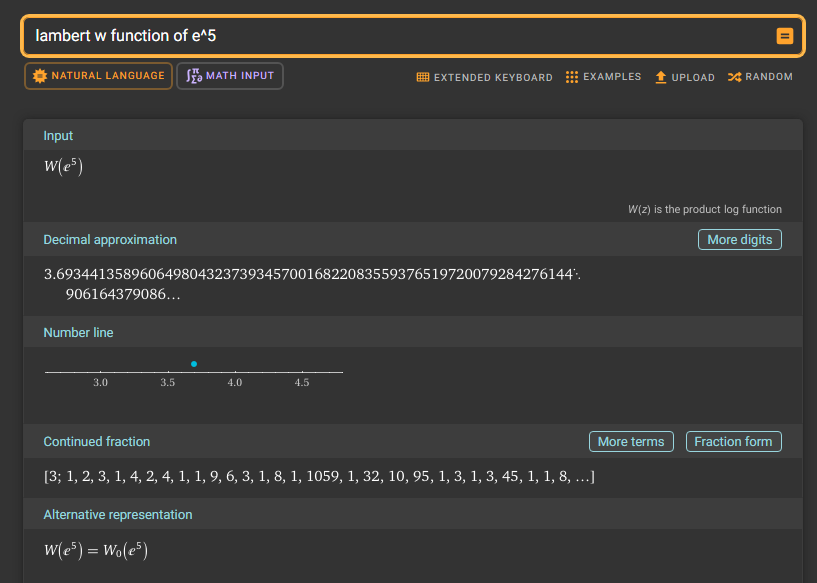 Konstigt nog att de skulle ha en sån här uppgift i matte 3, för man verkligen inte behöver kunna det här med Lambert W funktion. Visst, det är bra att veta, men försöker bara säga att det är konstigt att det vore förekomma i denna kurs.