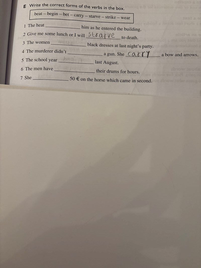 Du behöver böja verben i dåtid där det passar! ”She carry a bow and arrows” eftersom meningen innan visar att det är dåtid måste du böja carry i dåtid: carried
