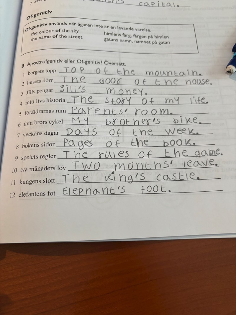 top of the mountain Är det första vad menas med apostrofgenitiv eller of- genitiv.