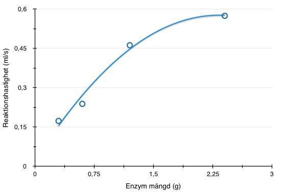 Sedan gör du en ny graf med enzymmängden som x-värde och reaktionshastigheterna du läste av tidigare som y-värden.