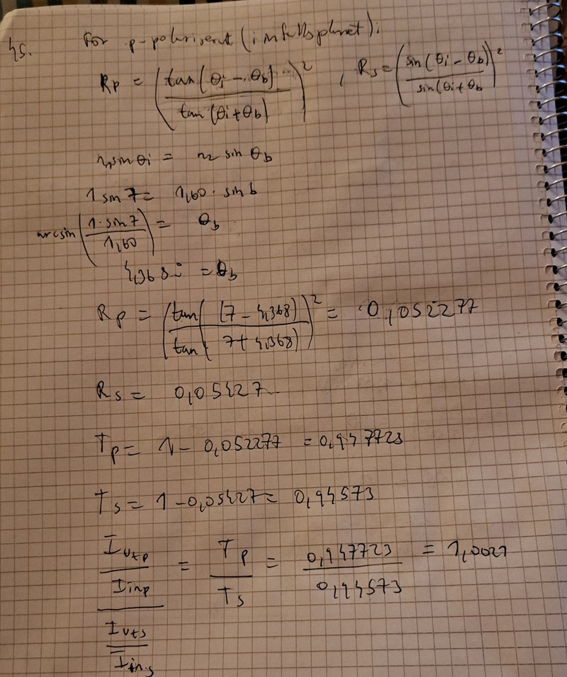 Jag fick fel svar här trots att jag använde fresnels formler.
