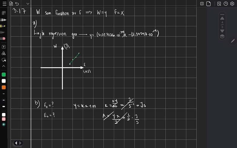 Jag har ritat kurvan m.h.a regression. Men jag vet inte vad förhållandet mellan plancks konstant och kinetisk energi är. Jag vet bara att att