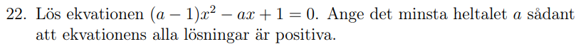 Så man behöver egentligen endast titta på fallet a=1 och se att ekvationens alla lösningar är positiva.