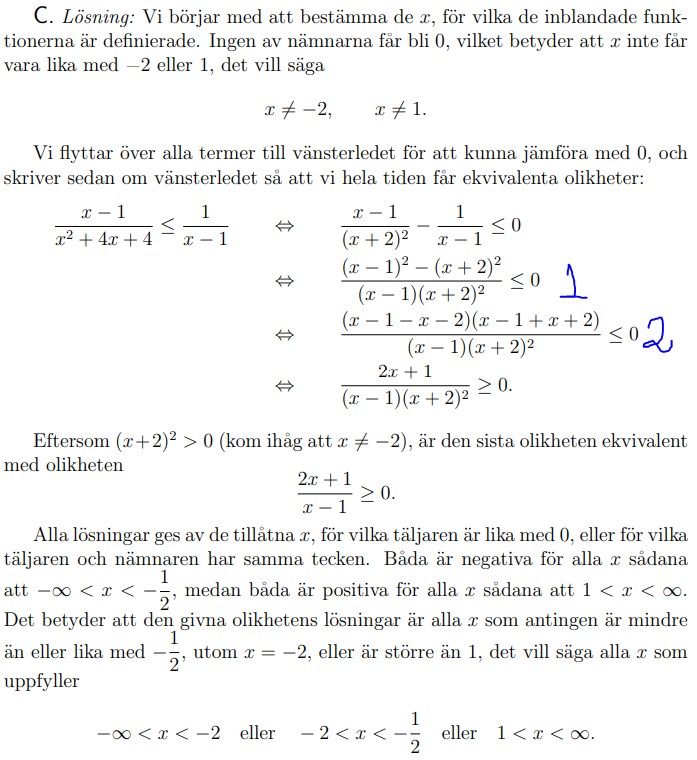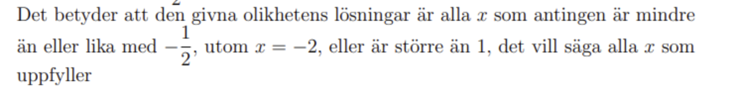 Noterar att facit skriver i text mindre än eller lika med -1/2 (rätt) men sen i symboler skriver mindre än