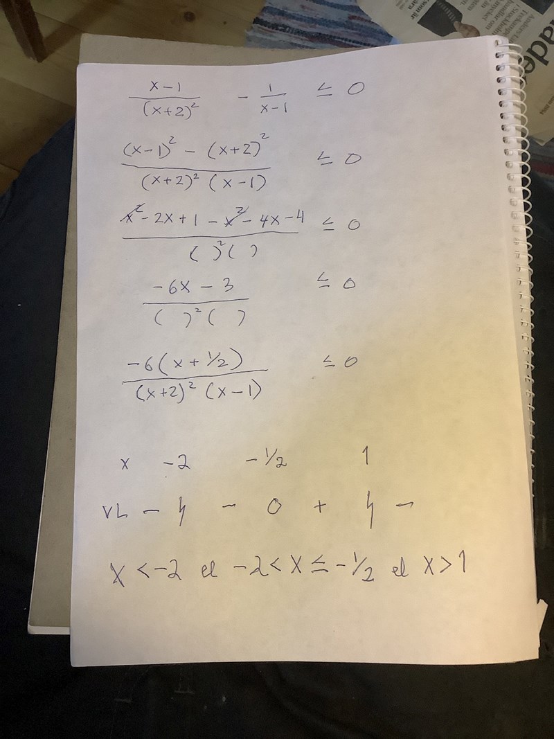 Jag har räknat enligt nedan, men enligt facit är detta ej rätt. Förstår ej hur, ser att i facits beräkning så har de fått en annan täljare än den jag fick. Ser ni något fel i det jag räknat? Och sen undrar jag om man i sitt intervall ska inkludera "oändligheten", tex att jag skriver -oändlighet<x<-2 istället för bara x<-2. För jag har alltid skrivit det senare alternativet, men märkte att facit gör det första alternativet.