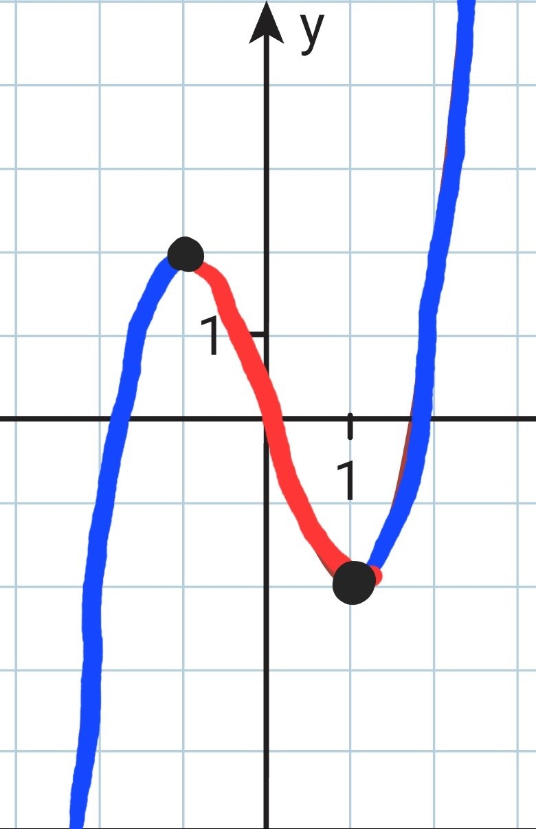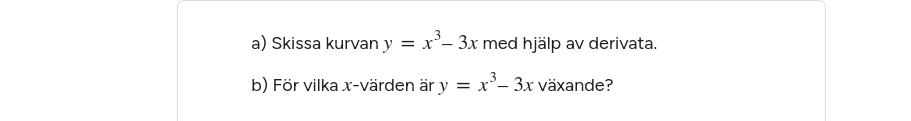 Jag behöver dessvärre hjälp med b) fallet, är det något intervall de vill ha där funktionen är växande för isåfall tänker jag <-1 x<1 men det står något helt annat i facit, kan någon förklara vad de begär att jag gör??