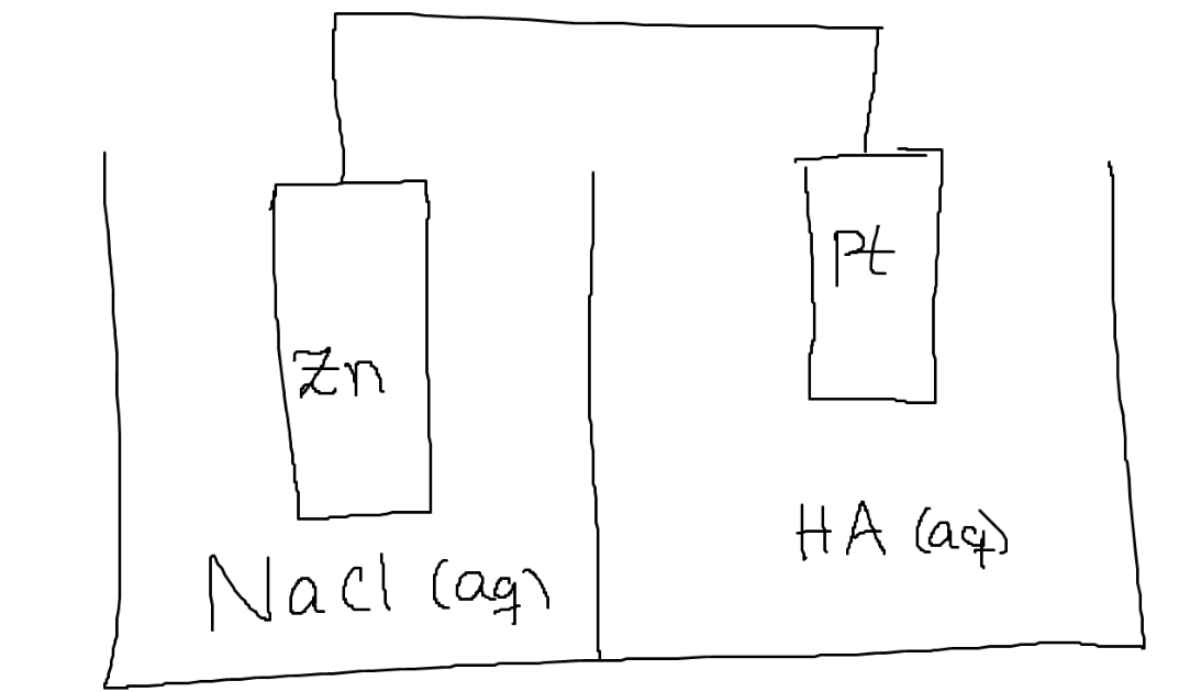 Zn2+ (aq)+ 2HA (aq)→ Zn (s) + H2 (g)+ 2A- (aq)