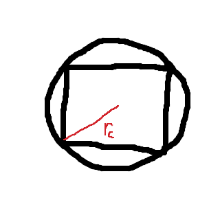 Sedan hade vi en kvadrat i cirkeln, vars kanter precis nuddar vid cirkeln: