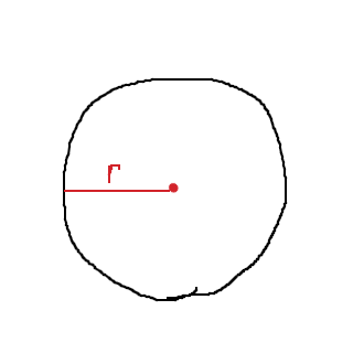 Vi kallade cirkelns radie för r. Det är avståndet från cirkelns mittpunkt och ut till kanten: