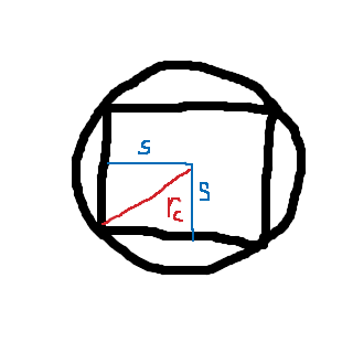 Den lilla kvadraten är en fjärdedel av den stora. Kan du uttrycka sidan s med hjälp av r(c)?