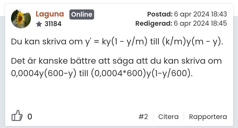 Själva diffen är samma (y' = konstant * y + konstant2 * y^2), men koefficienten och är inte det