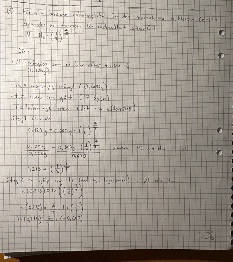 ska man använda detta sedan lösa ut T1/2 med Naturliga log?