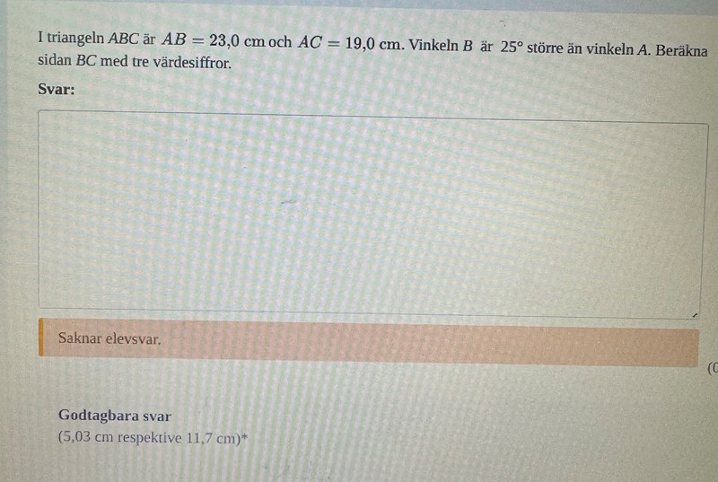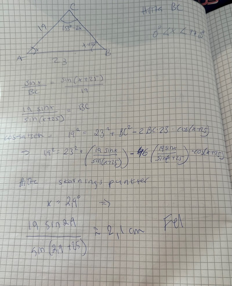 Du ska ta BC i kvadrat i cosinus-satsen.