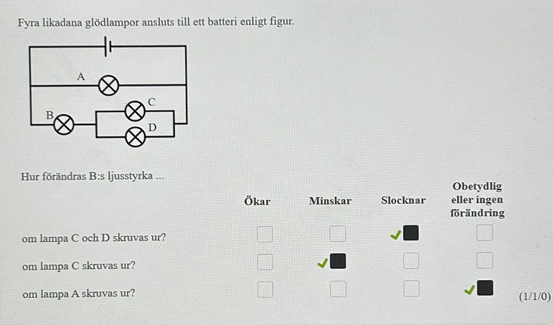 Men om det är en parallel koppling som jag ser, varför händer ingenting till lampa B om lampa A skruvas upp. Borde det inte bli mer ström som går mot A?