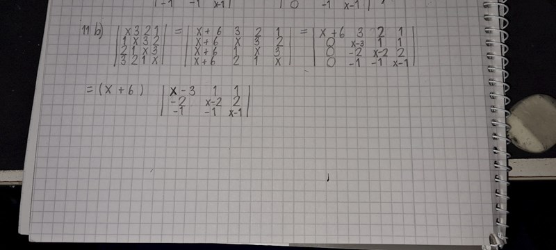 Har provat på den sista determinanten ett tag men hittar inget enkelt sätt att triangularisera den eller få något lätt uttryck. Har provat några olika sätt & känner jag stirrar mig blind. Hjälp pls?