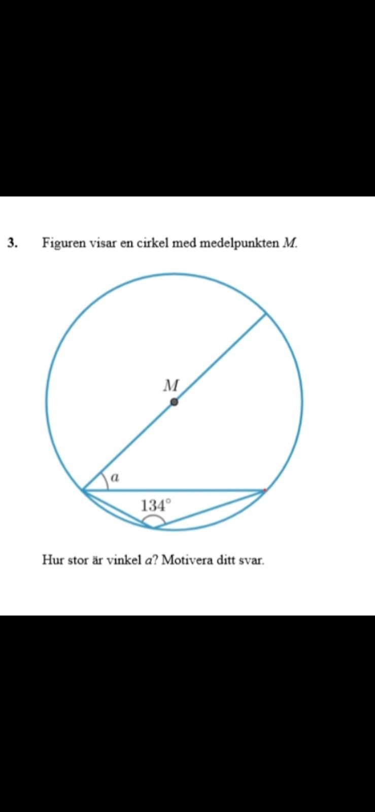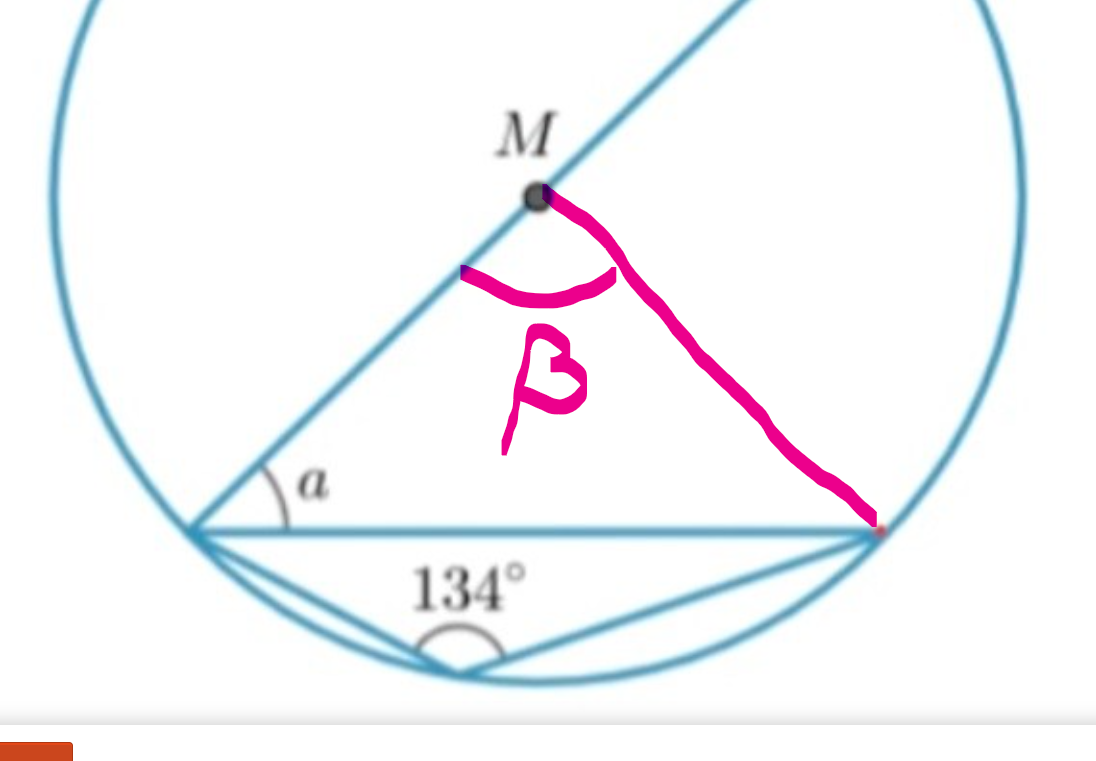 Skulle du kunna förklara hur vinkeln beta är relaterad till vinkeln 134 grader? Geometri är nog det jag är sämst på så vet inte om jag överkomplicerade när jag löste uppgiften. Först tänkte jag att deras relation hade något med randvinkelsatsen att göra men det verkade inte checka ut.