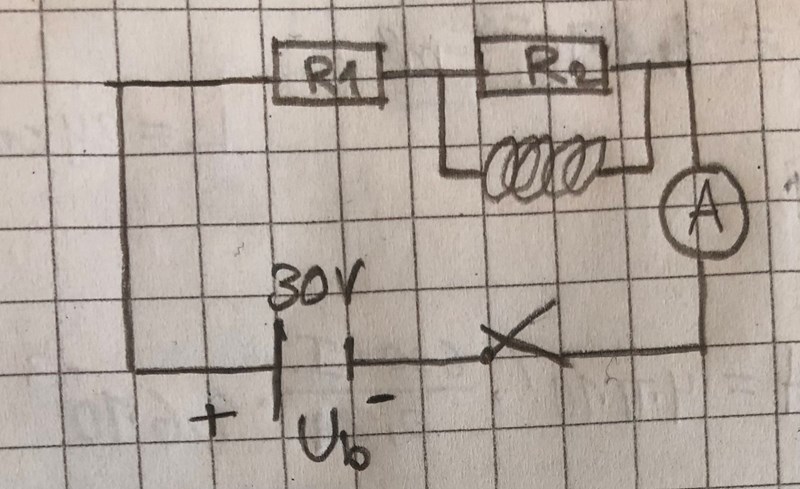 Tack för er tålamod! När strömmen blir stabil induceras ingen spänning längre i spolen eftersom (di/dt)=0 och e=L(di/dt) blir därmed noll. Har det någon koppling till att strömmen inte passerar R2 ? Vad beror det på?