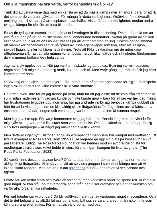 kan jag få snälla feedback utifrån källa, formulera inledning och avslutning, o att det riktar sig till åhörarna, väldisponerat, sammanhängande, anpassat språk, övergång,