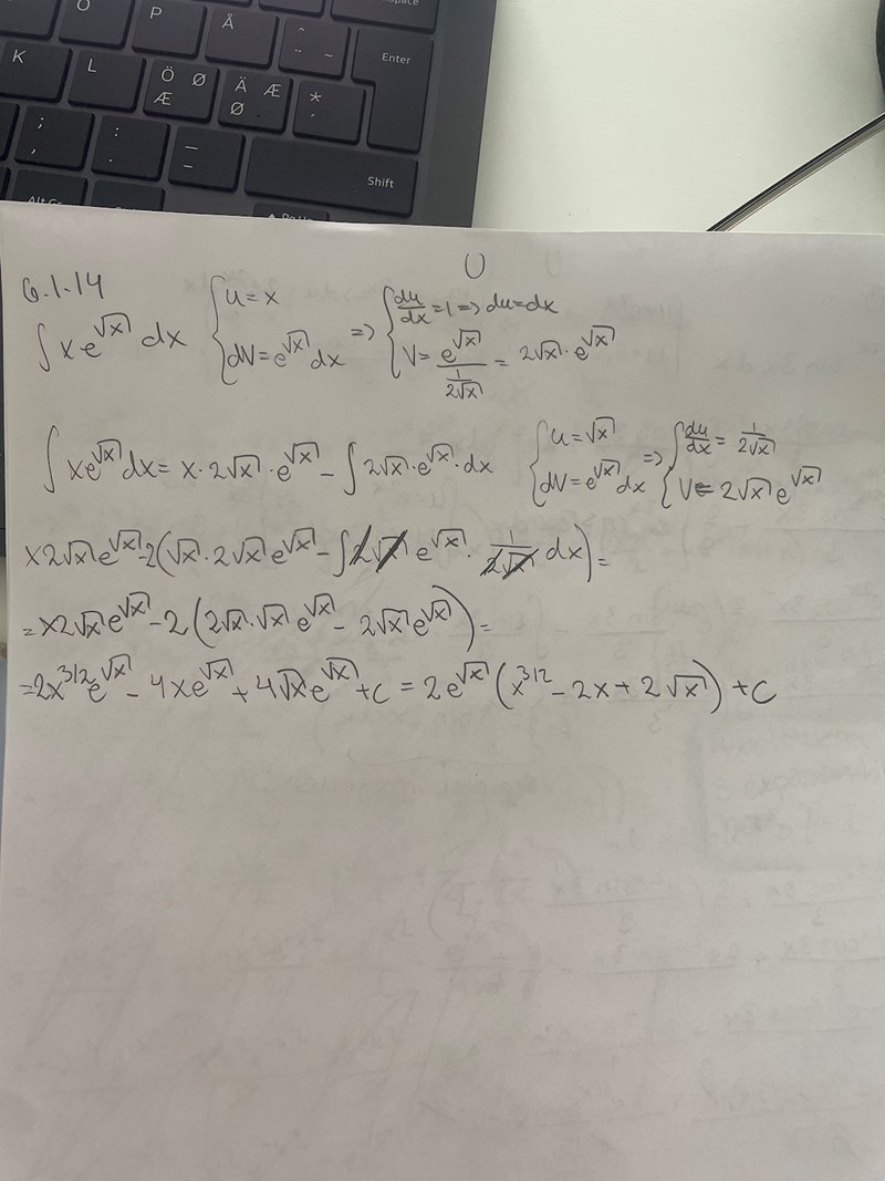 Jag skulle starkt rekommendera att du gör variabelbyte i början, för att bli av med kvadratroten i exponenten. Först efter variabelbytet får du partiellintegrera.