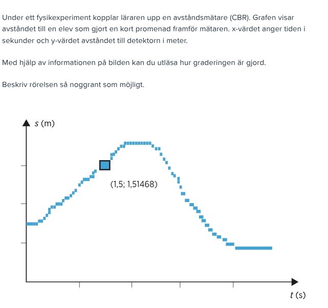 Vid tipunkten t = 1,5 s så befinner sig eleven alltså cirka 1,5 meter från detektorn.