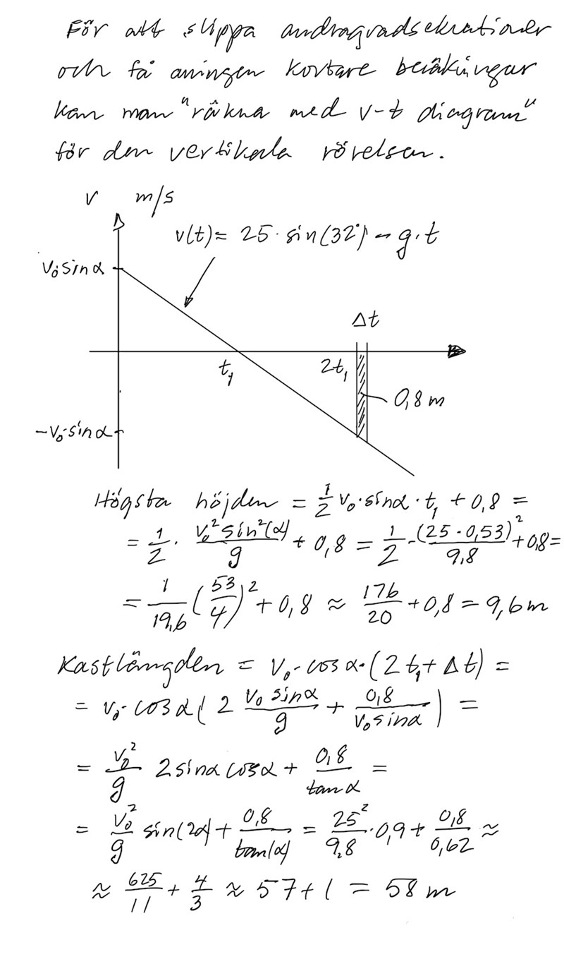 - Använda att när släggan är som högst upp så är hastigheten i y-led lika med 0. Då kan du använda att hastigheten i y-led vid tidpunkten t är