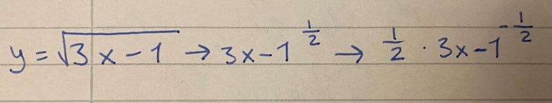 Jag antar att den yttre derivatan är (3x-1)^1/2 men vad är den inre derivatan då?