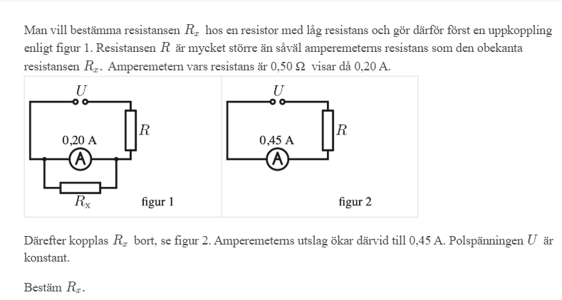 Jag undrar varför facit säger att man kan ignorera Rx och då utgå från att den totala strömmen = strömmen i kretsen för figur 2. Hur vet jag att den inte kommer påverka så mycket? I vilka fall kan jag ignorera en resistans?