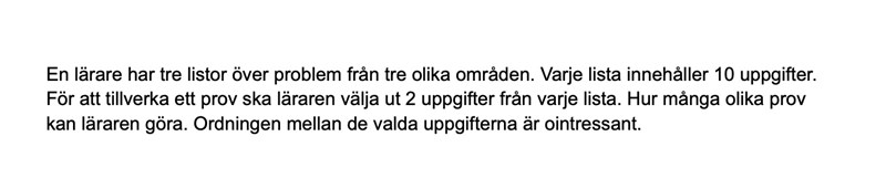 Antal sätt att välja 2 uppgifter från 10 är en kombination: